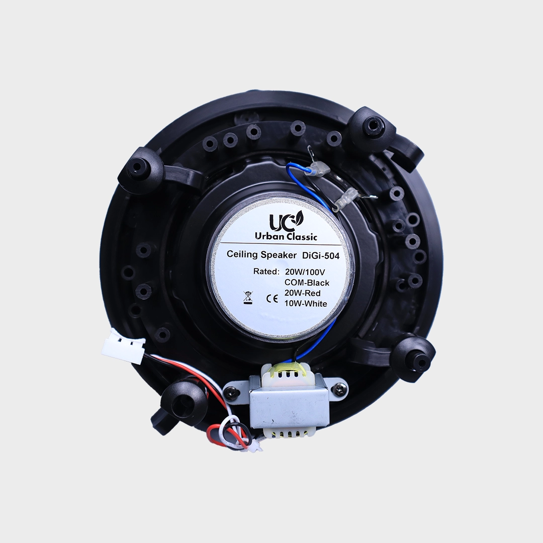 The Urban Classic DiGi-504 delivers crisp, high-fidelity sound with a slim in-ceiling design, making it ideal for retail stores, showrooms, and home theaters. With wide dispersion and flexible 100V output, it ensures seamless audio coverage in any setup. This LMT ceiling speaker is the best choice for commercial and residential audio setups, offering reliable performance and easy installation.